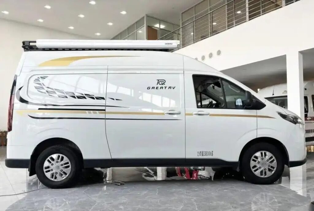 The Iveco refitting vehicle boasts clean white bodywork measuring 5364mm long, 2030mm wide, and 2420mm high. Its streamlined dimensions ensure easy navigation through both city streets and country lanes. Constructed with 70% high-strength boron steel for safety while maintaining lightweight properties for better fuel efficiency, this camper achieves an impressive 7.4L/100km fuel consumption despite its capabilities.