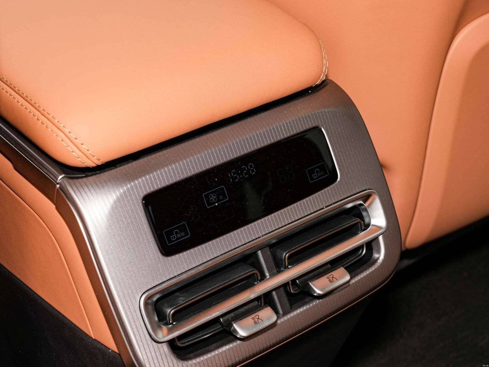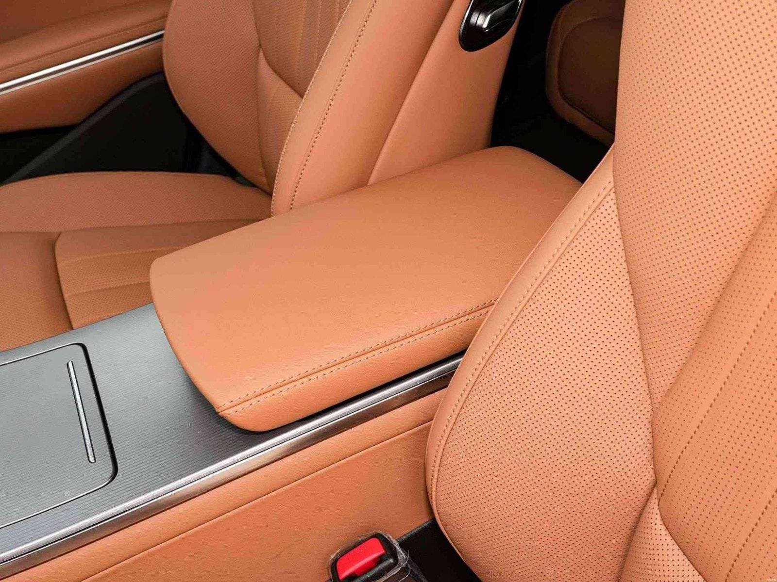 The front seats support heating, ventilation, and massage functions, while the rear seats are equipped with a larger central armrest and a “boss button.” All four doors feature double-layered glass. Additional features include a built-in refrigerator, an aroma system, wireless charging for front-row smartphones, and a Dynaudio sound system.