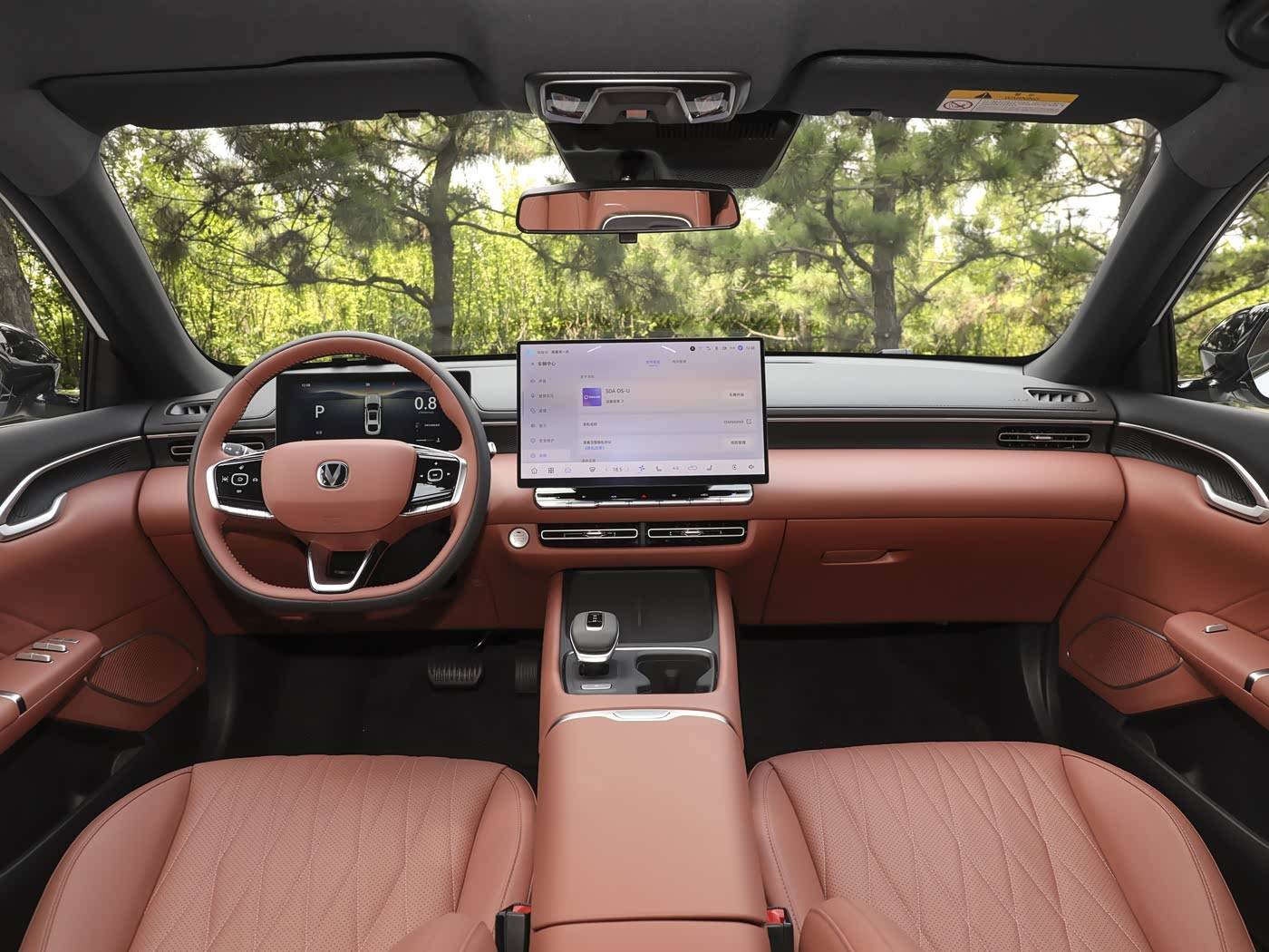 Inside, the Changan Eado features a 10.25-inch full LCD instrument panel, more refined than the previous model, paired with a three-spoke two-tone multi-function steering wheel. The center console boasts a 14.6-inch horizontal multimedia touchscreen, below which are physical buttons and air vents. The center console area includes a wireless charging pad, electronic gear shifter, and dual cup holders, resulting in a more technologically advanced layout and design. The Eado’s interior will be available in three two-tone colors: Obsidian Black, Mysterious Red, and Purple White.