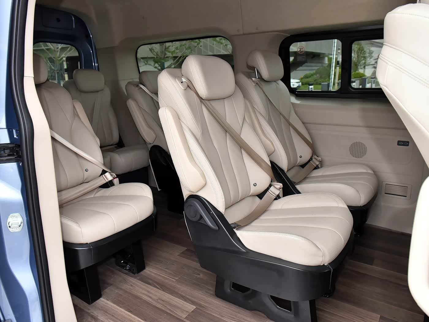 The Iveco Juxing features panoramic side windows and a sliding door on the right side. The rear features a split tailgate design, with an irregularly shaped rear window combined with vertical taillights that incorporate LED light strips. The vehicle will be available in two wheelbases and two roof heights, offering seating layouts from 2 to 9 seats to meet diverse user needs.