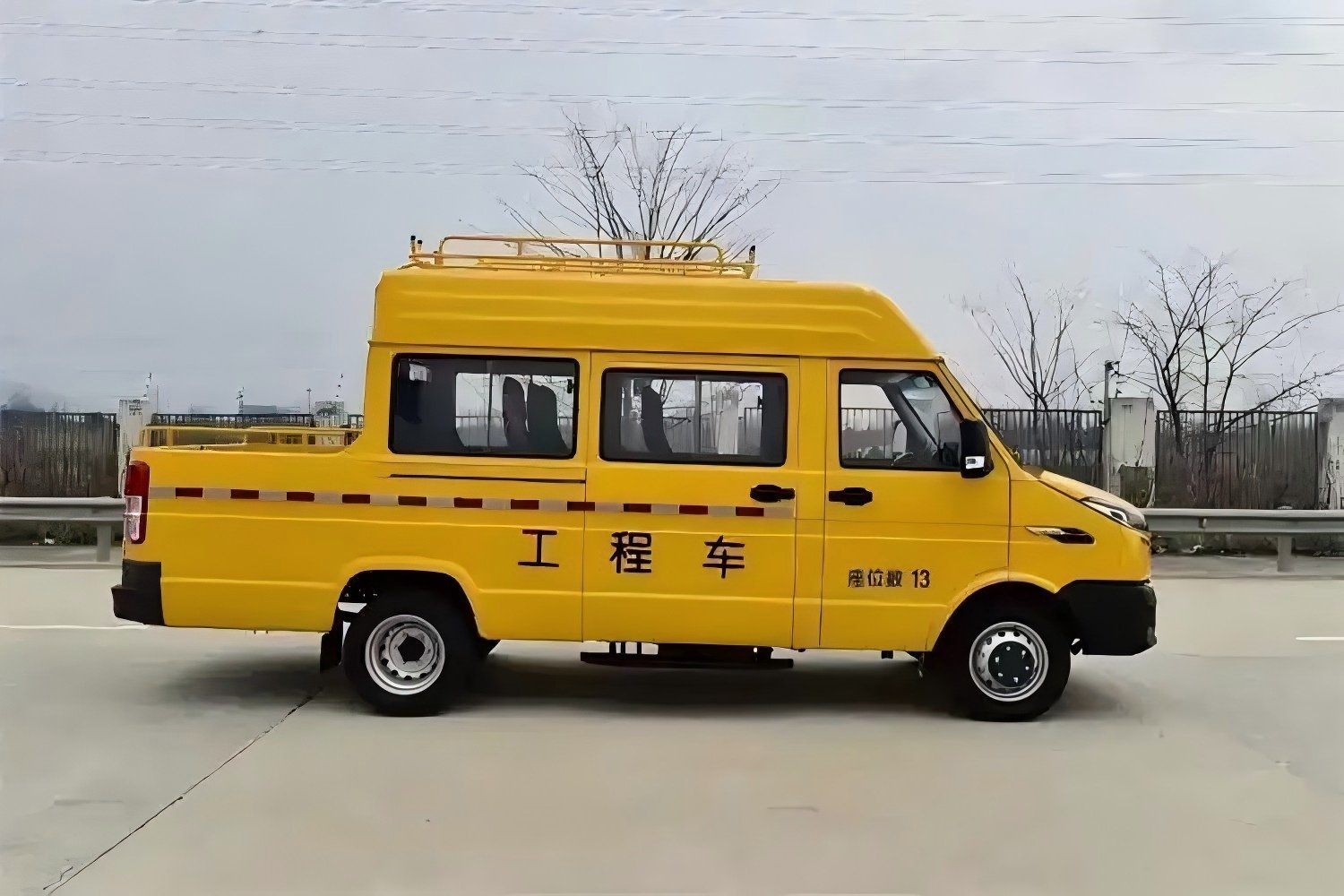 | Remarks: | ABS system controller model: 3550B500, ABS system controller manufacturer: Zhejiang Asia-Pacific Electromechanical Co., Ltd. Net engine power: 93kW. The vehicle interior includes a tool cabinet; a cargo bed is located at the rear. Optional features include an onboard electric winch, roof rack, rear ladder, roof-mounted air conditioner, and high-mast lighting. With a medium roof, the overall height without a roof rack is 2500mm. With a roof-mounted air conditioner and roof rack, the height is 2750mm; with high-mast lighting, the height is 2850mm. With a low roof, the overall height without a roof rack is 2240mm. With a roof-mounted air conditioner and roof rack, the height is 2490mm; with high-mast lighting, the height is 2590mm. For a passenger capacity of 10, a shorter cargo box (1840mm long) is available. The curb weight is 2940kg when equipped with a roof rack and rear ladder. Reflective markings: Brand: 3M; Manufacturer: 3M China Co., Ltd. |