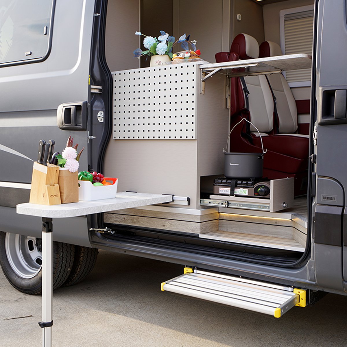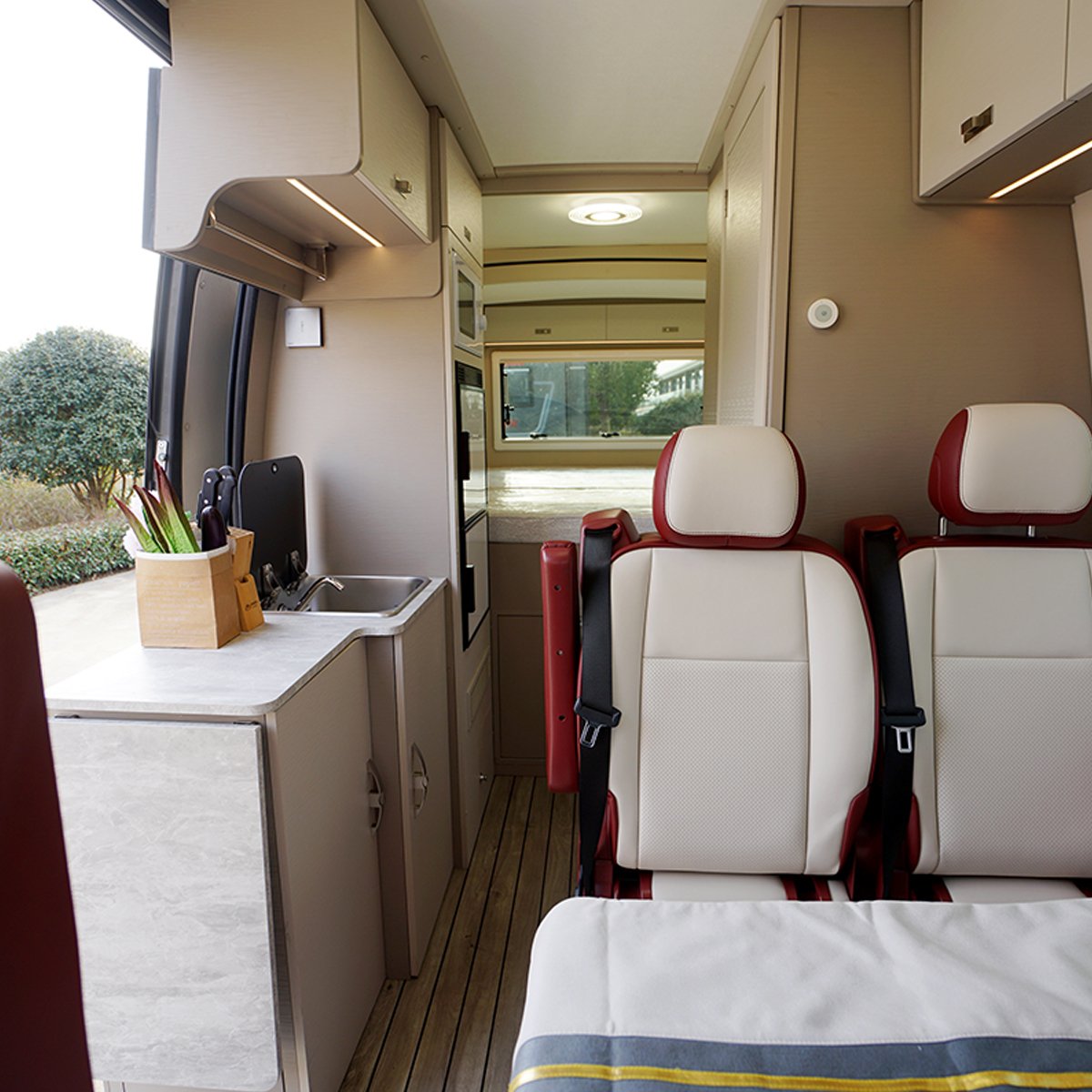 | Body structure and accessories | Driver and passenger side doors, right-side sliding door, rear double doors, driver and passenger power windows, outward-opening windows, motorhome Specialized curtains and sunshades, rear extension compartment, electric entry step, front bumper, and top guardrail. |