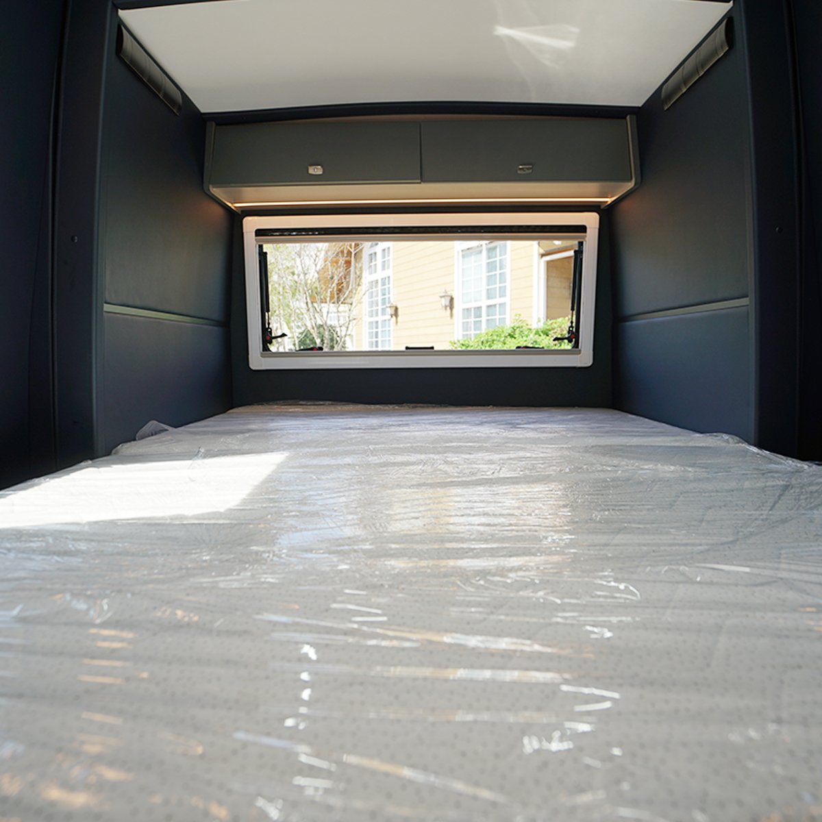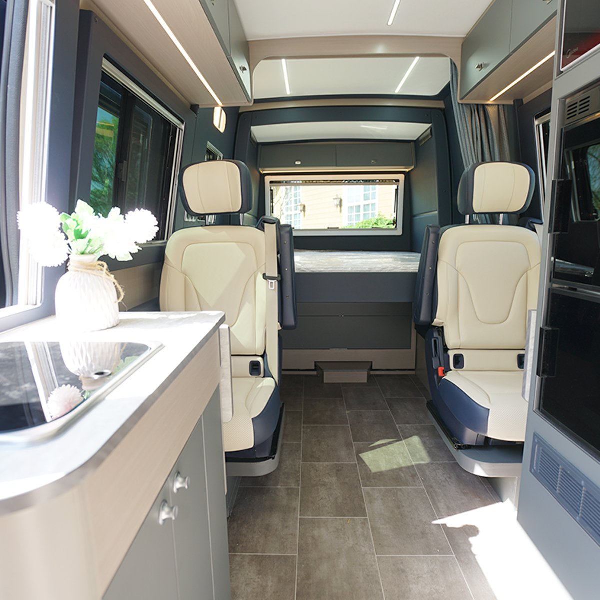 • Class-Leading Rear Expansion: The standout feature is Zhongyi’s self-developed, high-strength, large-size rear expansion system. When deployed, it creates a spacious 1.95m x 1.5m double bed, transforming the interior living area to rival that of many larger Class C motorhomes.