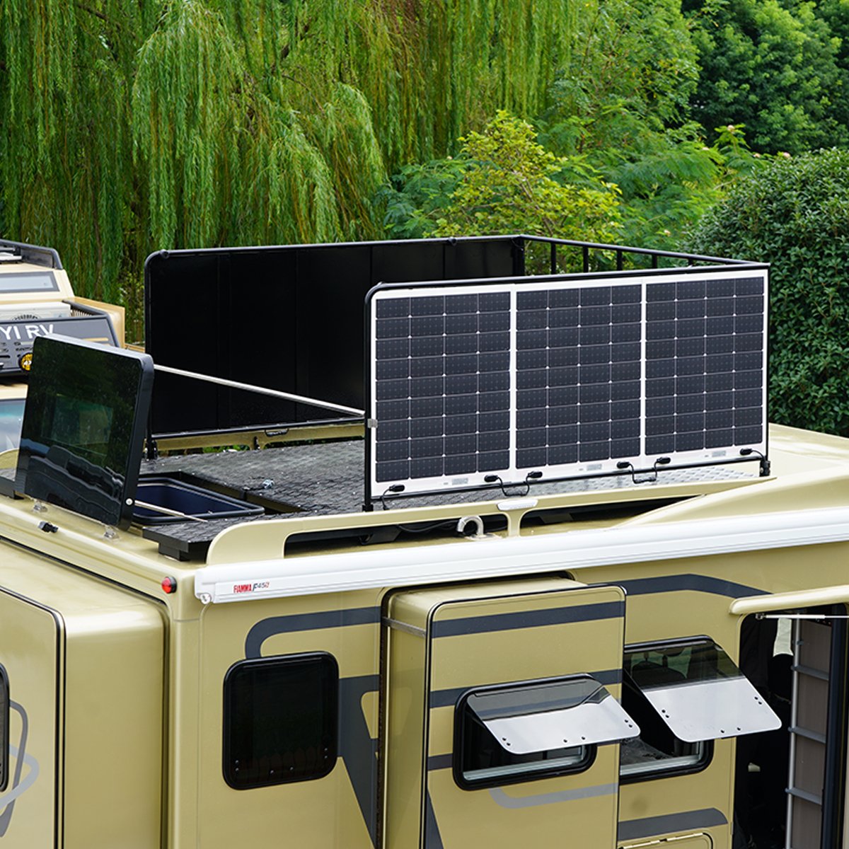 The camper combines a reinforced steel-aluminum body with high-strength electric expansion systems on both the left and rear sides. Developed independently by Zhongyi, these expansions are not only dustproof and waterproof but can also be manually retracted when needed.