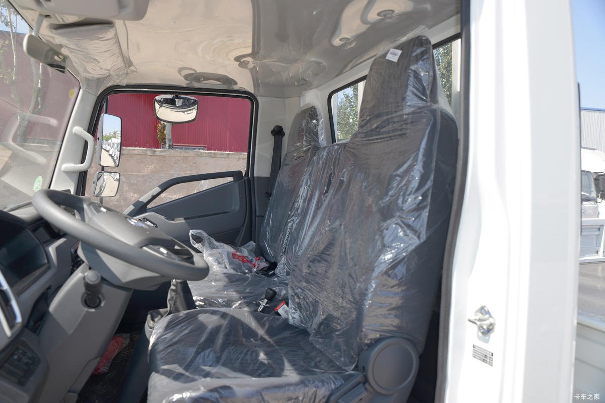 In terms of appearance, the C300 presents a clean and functional design. Its straightforward front fascia features a signature “SAIC-YUEJIN” logo, integrated with two silver satin grille bars. The vertical headlight assembly includes LED daytime running lights for better visibility. The truck’s cab is relatively spacious for a single-row setup, with a body painted in a simple, classic white. Designed to manage city and township traffic, it includes features like split rearview mirrors to help minimize blind spots. It offers a practical, roll-top cargo bed ideal for construction materials, produce, or general goods.