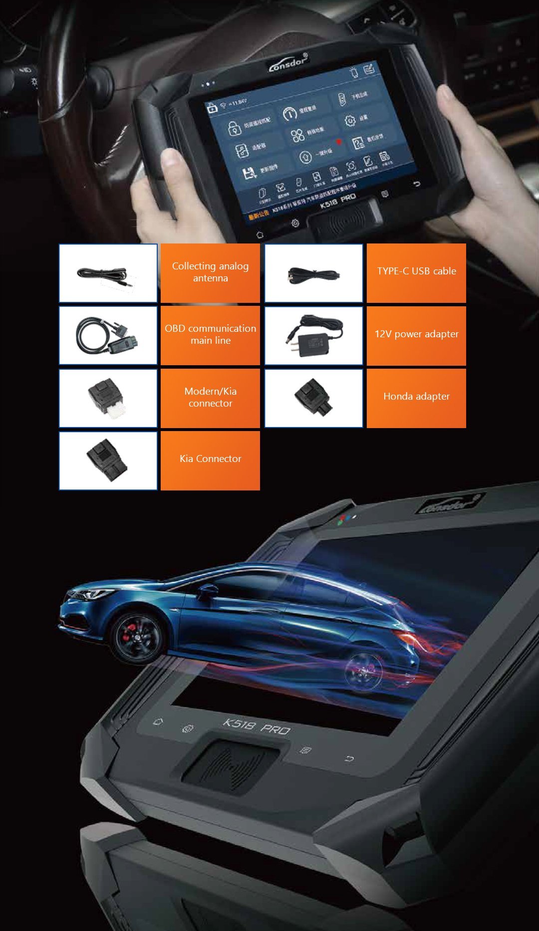The device includes anti-theft remote control matching, mileage recovery, slave generation, adapter, chip identification copy, key chip generation, remote control frequency detection,